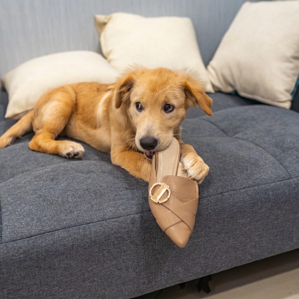 En valp som biter i fötterna, byxbenen eller till och med i händerna är en vanlig utmaning för hundägare? Valpen kan även ge sig på kuddar, möbler, skor och barnens leksaker.